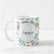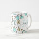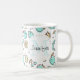Une tasse avec une jolie ligne motif de fruits. Couleurs vert clair et jaune. Un design estival amusant. Un cercle blanc superposé avec votre nom et votre monogramme initial à l'intérieur.