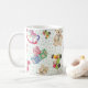 Motif mignon de jouets pour enfants mélangés sur un arrière - plan tacheté vert. Ça fait une grosse tasse pour les petits.