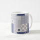 motif patchwork Abstrait et délicat, ornement en dentelle florale bleu indigo foncé et beige clair de fleurs roses stylisées, feuilles provençaux. Design textile, peinture batik, broderie coussin