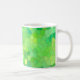 décoration abstraite motif dans les tons verts avec beaucoup d'éléments géométriques ressemblant à une peau de reptile sur une tasse de café
