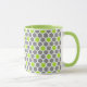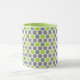 Cette tasse à café moderne dispose d'un motif hexagone géométrique coloré en gris et vert citron.