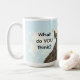 La tasse à café classique est une girafe qui regarde directement dans la caméra avec le texte (personnalisable) : "Que pensez-vous ? Les cils - trop pour ça tôt dans la journée ?" Cute et drôle tasse à café.