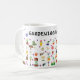 Mug conçu pour les amoureux du jardinage, avec outils, plantes, fleurs et choses liées au jardinage.