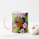 La tasse présente un design saisissant orné de fleurs rouges et roses vibrantes dans le style traditionnel Petrykivka. Les motifs floraux complexes sont dressés contre un riche arrière - plan noir, créant un contraste audacieux qui met en valeur les couleurs vives et le brossage détaillé typiques de cet art populaire ukrainien. L'ensemble est à la fois attrayant et élégant, faisant de la coupe un bel art fonctionnel.