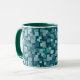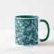 Bleu, aqua et carrés turquoises décorent cette tasse à café de style rétro. Le design est issu de l'art original.