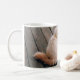 Cette tasse blanche classique est conçue avec ma photo d'Amber, un chat perse blanc et rouille sur une véranda.