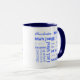 mahj, mahjong, mah jongg, mah-jongg, tasse américaine de mah jongg, tasse bleue 2 tons avec mots mahj