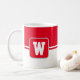La tasse de café est présentée ici avec une impression en bloc couleur avec un exemple de lettre, de personnaliser et de changement de couleurs et de lettre ou d'achat tel quel. Couleurs Rouge, Blanc Customiser cet article ou acheter tel quel.
