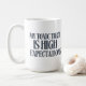 A bold, minimalist text design featuring the humorous and self-aware phrase, "MY TOXIC TRAIT IS HIGH EXPECTATIONS." The text is set in a strong, serious serif font, creating a contrast with the lighthearted, trending social media concept. This design appeals to those who relate to having demanding standards for themselves and others.