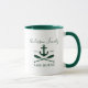 Styliste Script Nautical Lake House Ancre Oars Nom de famille Forêt Mug vert et blanc