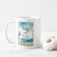 This beautiful and elegant wedding mug with a nautical black and white lighthouse, starfish and shells. Perfect for a wedding. The words can be changed to suit your own details or requirements