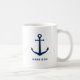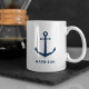La tasse à café Nautical personnalisée dispose d'une élégante ancre de bateau de style côtier avec un texte moderne simple qui peut être personnalisé avec un prénom ou un nom - ou d'autres textes préférés. Le bleu marine et le blanc sont des couleurs classiques.