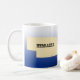 Carte de l'état du Nebraska en jaune sur la gauche. À droite se trouve le texte "Lincoln" "Nebraska" "U.S.A." L'Arrière - plan est bleu (une couleur de drapeau d'état) en bas avec l'ombre au blanc en haut. Personnalisez avec votre nom de ville/ville et la couleur arrière - plan de votre choix.