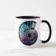 Mug dans une spirale, naustilus carapace à motifs d'une nébuleuse bleue et violette aux étoiles