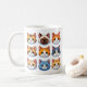 Neuf faces de chat disposées horizontalement, trois dans chaque rangée. Ces visages de chats mignons et différents de races différentes sont dans le style de dessins animés colorés pour les enfants. L'arrière - plan est blanc. Commencez votre journée avec un sourire avec ces adorables tasses à café qui égayeront votre routine matinale ! Des modèles excentriques aux motifs élégants, ces tasses vous apporteront une touche de plaisir à votre café. Lequel est ton préféré ? ☕️ ✨