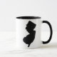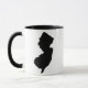 La forme de l'état du New Jersey en noir et blanc. Vous pouvez modifier la couleur de l'arrière - plan ou ajouter un message texte souvenir personnalisé.