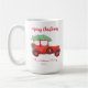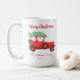 Mug de Noël avec camion rouge rustique/vintage portant un arbre de Noël sur arrière - plan blanc. Joyeux Mug de Fêtes, Joyeux Mug de Noël. Plus de produits avec ce design dans la collection ci-dessous.