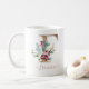 Cette tasse à café botanique de vacances rustique présente une verdure peinte à la main avec des baies rouges et une lettre en faux or F avec un nom personnalisé dans une main d'or assortie lettre moderne en dessous de l'initiale. Fait un beau cadeau pour cette femme spéciale dans votre vie pour Noël. Conçu par Susan Coffey.