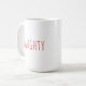 Une tasse à café de Noël inspirée par Rae Dunn avec le dicton Naughty en rouge.