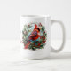 Un beau cardinal de Noël rouge assis sur une charrue de Holly Berries, portant des souhaits de Bonnes Fêtes.