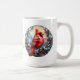 Un beau cardinal de Noël rouge assis sur une touffe de pins, portant des souhaits de Bonnes Fêtes.