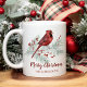 Mug Noël Rouge Cardinal Pin d'hiver Aquarelle