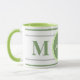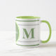 Monogramme initial en vert tendre des deux côtés. Nom en écriture blanche au centre des cercles géométriques verts. Bandes géométriques vertes et argentées. Mélanger et faire correspondre les motifs. Designs originaux de TamiraZDesigns.