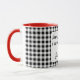 Un buffle noir et blanc classique vérifie le motif avec du texte manuscrit noir. Un cadeau parfait pour tous ceux qui figurent sur votre liste de vacances. Il s'agit d'une tasse de boisson couleur combo 11oz, choisissez parmi 10 couleurs pour l'intérieur et la poignée. Disponible également en grand 15oz. avec 5 couleurs et plusieurs autres styles. Modifiez facilement le texte pour le rendre vôtre en utilisant le Modèle fourni. Pour plus d'informations, reportez-vous à la section "À propos de ce produit" à côté.