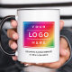 La tasse à café biface personnalisée comprend votre logo professionnel en couleur, ainsi que votre nom d'entreprise et d'autres informations personnalisables. Ajoutez simplement le logo de votre entreprise à l'espace noir de l'espace réservé à l'image et ajoutez votre slogan, votre site Web ou tout autre libellé.