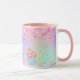 Un holographe branché, arrière - plan irisé avec des couleurs unicorne et des couleurs arc-en-ciel en rose, violet, vert menthe. Décoré de confettis roses et de 3 cupcakes. Personnalisez et ajoutez votre nom. Le nom est écrit avec un script de style moderne écrit à la main avec des swashes. Pour que les swashes ne suppriment que le nom de l'échantillon, laissez les espaces ou émoticônes devant et après le nom.