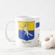 Le nom de famille italien Romano Historical Shield affiche un renard blanc sur un champ horizontalement divisé d'or et de bleu. Ceci est affiché deux fois sur la tasse avec le Blazon qui est une description de la conception sur le bouclier dans "parler heraldry". Votre nom est-il italien ? Nous pouvons faire des recherches sur votre nom et vous fournir une tasse avec un design historique des bras ici sur Zazzle! Demande-nous. Idéal pour présenter un patrimoine familial ou offrir en cadeau.