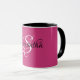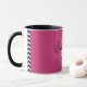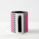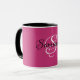 Une tasse couleur magenta aux tons foncés avec un motif à vague un intérieur noir avec votre monogramme personnalisé au centre, il suffit de remplir les modèles et de choisir votre style et couleur intérieure.