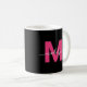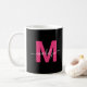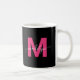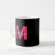 Personnalisé Moderne Élégant Pink Et Noir Nom Script Initiale Monogramme Café Mug. Cette tasse chic et féminine apporte une touche personnelle et élégante à toute collection d'amoureux du café ou du thé. Doté d'une initiale rose magenta audacieuse sur un arrière - plan noir élégant portant un nom de script blanc délicat, le monogramme est affiché de chaque côté, ajoutant un look exceptionnel et personnalisé de tous les angles. Conçu dans une ambiance moderne et minimaliste, ce mug fait un cadeau réfléchi pour les anniversaires, les ménagères, les vacances, ou simplement parce que. C’est aussi un choix idéal pour les douches nuptiales, les soirées bachelorette ou les cadeaux de mariage, alliant sophistication classique et charme féminin branché.