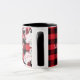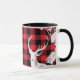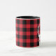 Black and Red Buffalo Plaid Check, traditionnel bûcheron de conception rustique de motif simple chèque dans les tons noir et rouge, avec cerf blanc dans les bois, avec nom modifiable sur et gros script texturé monogramme