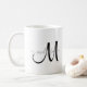 Prenez votre café du matin dans le style avec ce simple monogramme personnalisé et tasse de café de nom qui comporte une typographie de script noir et gris. pour vous de personnaliser. Conçu pour vous par ExtremeTees. Bon appétit !