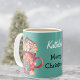 Illustration Magical Ice Cream Swirl House des deux côtés de cette tasse classique turquoise de 11oz. Grande capacité pour les boissons chaudes ou froides. Modifiez facilement le nom et le texte à l'aide du Modèle fourni. Aussi disponible en 15oz et d'autres styles de mug. Pour plus d'informations, reportez-vous à la section "À propos de ce produit" à côté.