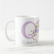 Joli design floral couleur pastel avec monogramme et nom du destinataire. Initial est la lettre Q. Queenie mug, un cadeau pour Queenie.