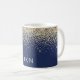 Tasse ou Mug Café avec Nom Monogramme et Initiale en Métal Brossé Doré et Bleu Marine Pailleté. C'est le cadeau idéal pour un anniversaire sweet 16, un mariage, une douche de mariée, un anniversaire de mariage, une baby shower ou une soirée d'enterrement de vie de jeune fille pour quelqu'un qui aime le luxe glamour et les styles chics.