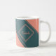 Cette tasse de base présente un design géométrique turquoise et saumon pâle à deux tons, avec du texte de nom à l'intérieur d'un simple diamant double bordé de part et d'autre de la poignée. Personnalisez le nom dans le champ de texte. Le changement se produira de part et d'autre de la poignée.