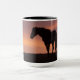 Un étalon solitaire se dresse sur une crête au coucher du soleil sur les pics McCullough.