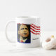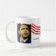 J'ai peint ce portrait de Barack Obama le jour d'élection pour exprimer mon enthousiasme. Maintenant vous à la part de boîte dans l'enthousiasme d'un avenir prometteur chaque fois que vous prenez un sip de cette conception présidentielle. Chaque côté de cette tasse montre le futur président et son expression de marque déposée de discours d'acceptation. "Oui nous pouvons".