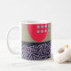 Cette tasse a un design abstrait moderne du milieu du siècle avec trois arrière - plans différents, lignes de zigzag, ovales et cercles, en marine, bleu clair, rouge, kaki et lavande. Si vous voulez le même design avec des couleurs différentes, envoyez-moi un message.