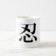 A mug with the character "忍", meaning tolerance and endurance in Chinese and Japanese. It is also the starting character of the word "Ninja" in Japanese, often representing the same. The single character, black against white, leaves a strong message no matter to who.