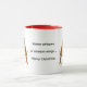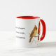 Cette tasse à café avec un cardinal de Noël présente une illustration numérique à l'aquarelle. L'œuvre représente des cardinaux perchés sur une branche pendant la saison hivernale, accompagnés de baies rouges. Une option de vœux personnalisable permet une expression personnalisée. Cette tasse bicolore rouge et blanc est un cadeau attentionné pour tout amateur d'oiseaux. L'œuvre a été conçue par Susang6 à l'aide d'un outil d'IA.