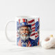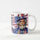 Oncle souriant Sam USA American Icon portant un costume américain et un drapeau américain agitant en arrière - plan