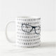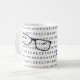Fun optician-themed mug with an eyesight test chart and spectacles. Fabulous gift idea for an optician, ophthalmologist, eyecare specialist, or anyone who wears glasses.