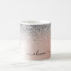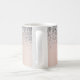 Or rose - Nom et initiale en métal brossé pailleté métallisé faux feuille rose blush et argent pour tasse ou mug à café. C'est le cadeau idéal pour un anniversaire sweet 16, un mariage, une douche de mariée, un anniversaire de mariage, une baby shower ou une soirée d'enterrement de vie de jeune fille pour quelqu'un qui aime le luxe et les styles chics.