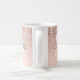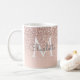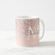 Joli or rose pailleté féminin, nom en écriture élégante et monogramme sur un mug fond rose clair. Conçu par Thisisnotme©