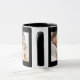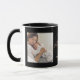 Cette adorable tasse photo de la Fête des Mères pour la première fois de la mère présente un arrière - plan noir foncé avec une typographie de script moderne en faux or rose qui dit "Fête des Mères Première". Ajoutez deux photos d'elle et du bébé, avec la place pour personnaliser avec les noms et l'année.
