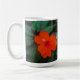 La fleur d'orange sur la photo originale de ZoeSPEAK sur cette Mug est une fleur d'impatiens de Nouvelle-Guinée, sa couleur orange intense presque brillante dans l'ombre. Les pétales délicats sont superposés sur les feuilles vert foncé du plante. Il y a du texte de nom qui est défini pour que vous personnalisiez ou supprimiez si vous le souhaitez.